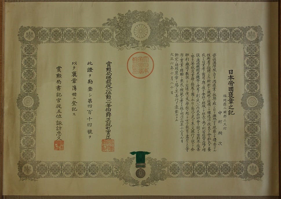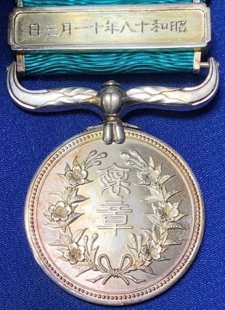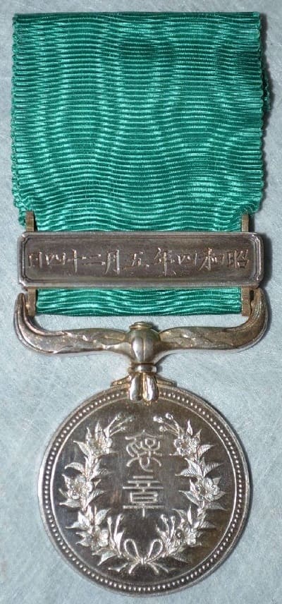 Green Ribbon Medal of Honour marked with ひ awarded in 1922