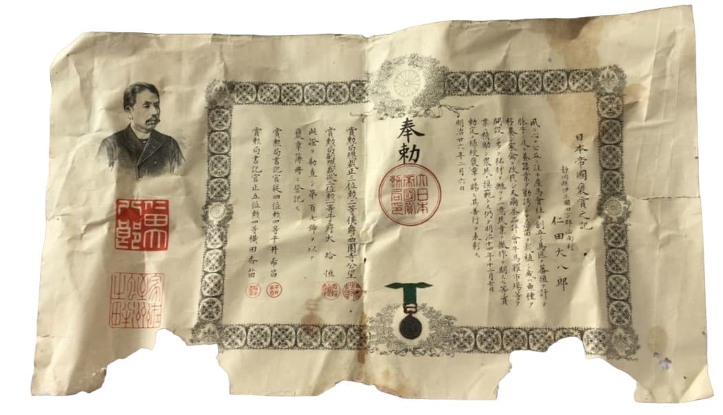 Green Ribbon Medal of Honour document issued in 1893