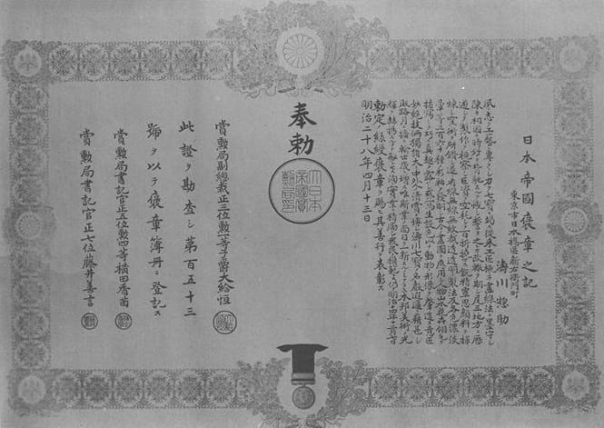 Green Ribbon Medal of Honour document issued in 1895