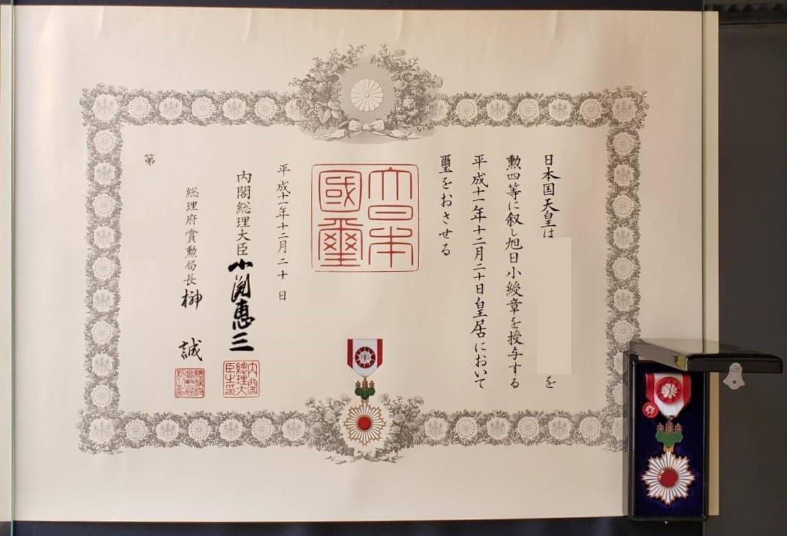 4th class Rising Sun order awarded in 1999