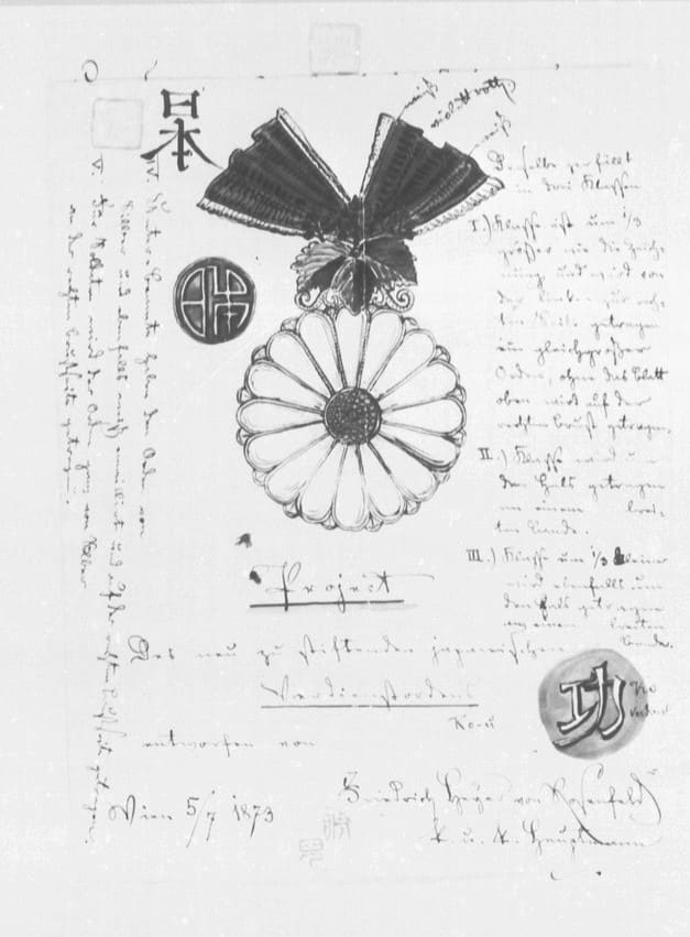 1873 Project of the Japanese Order by Austrian heraldist Friedrich Heyer von Rosenfeld