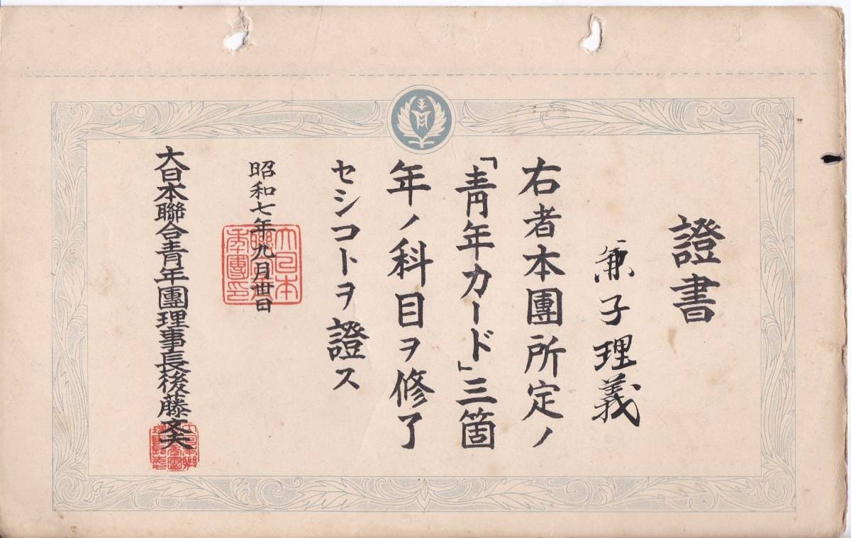1930 Great Japan Youth Association 6th General Meeting Participant's Badge/大日本聯合青年團第六回大會参加章