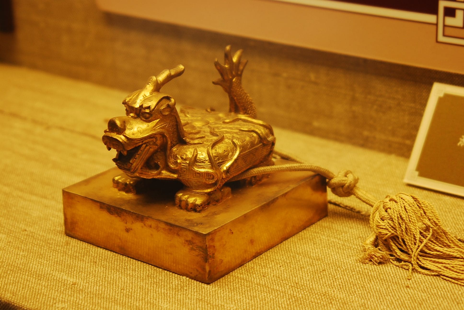 Imperial gold seal of Kangde Emperor (Henry Puyi). This seal was one of the several that were used to certify official edicts issued by the Emperor.
