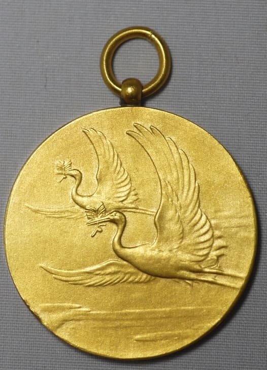 Gold version. Rare mint-made watch fob made in 900th gold. Reverse 聖上銀婚式記念 - Emperor's Wedding Silver Anniversary Commemorative 大正十四年五月 - May 1925 Gold finesse mark "900". Original case. 造幣局製 - Made by the Mint