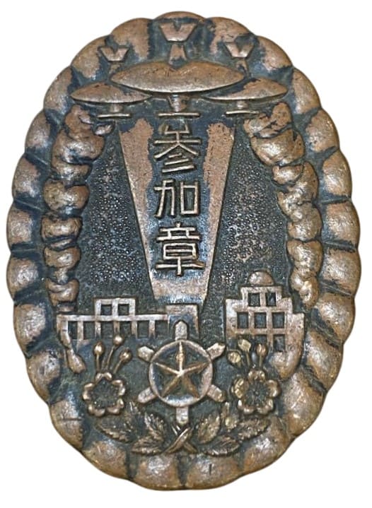 Badges with similar design were commissioned by Shitaya Ward Air Raid Defense Corps https://asiamedals.info/threads/shitaya-ward-badges-for-participants-of-air-defense-maneuvers-in-kanto.23247/