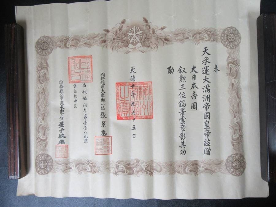 康徳十年満州帝国勲三位錫景雲章