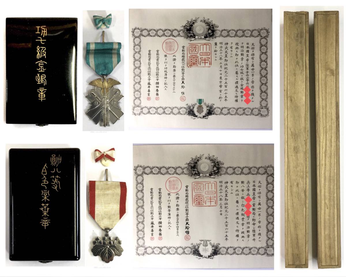 Both orders were awarded on April 1, 1906 to former army infantry sergeant Sutejiro Morita /元陸軍歩兵軍曹森田捨次郎/.