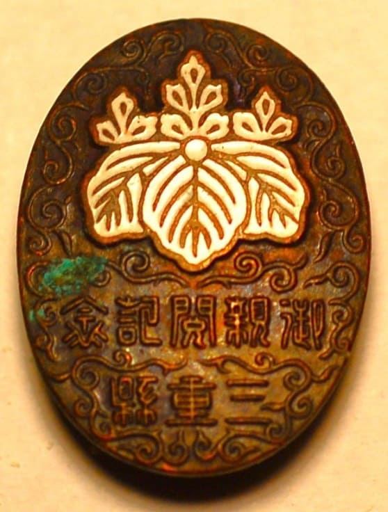 Badges with similar design https://asiamedals.info/threads/1932-osaka-imperial-inspection-commemorative-badge.24909/ ; https://asiamedals.info/threads/1932-large-maneuvers-imperial-inspection-participation-commemorative-badge.24908/