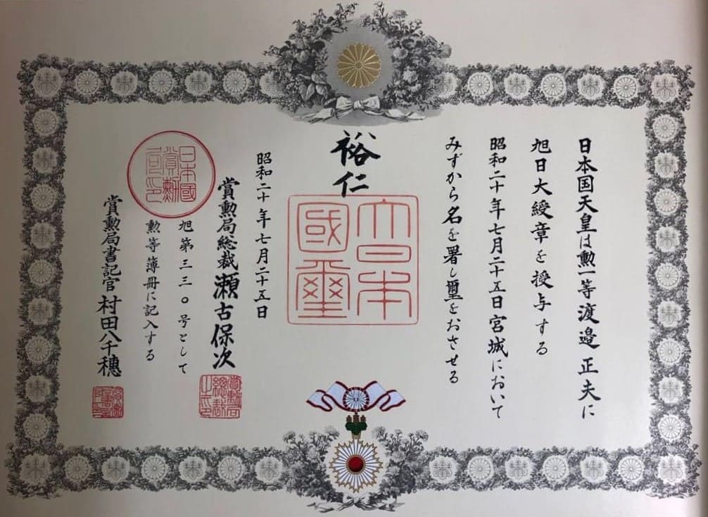 japanese rising sun award certificate