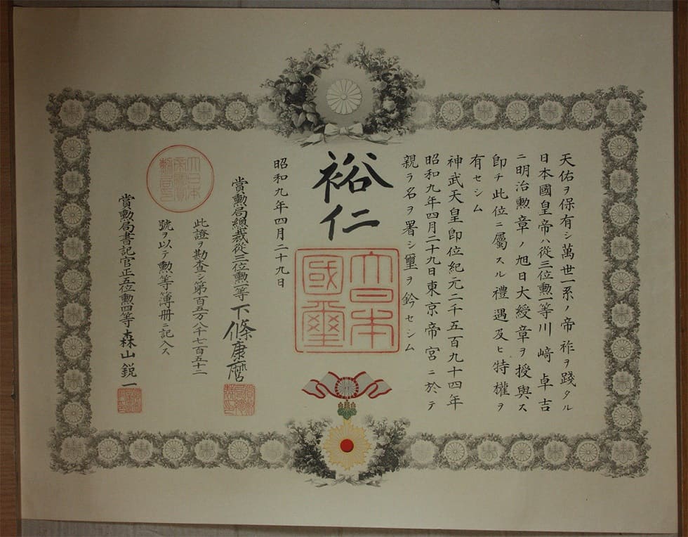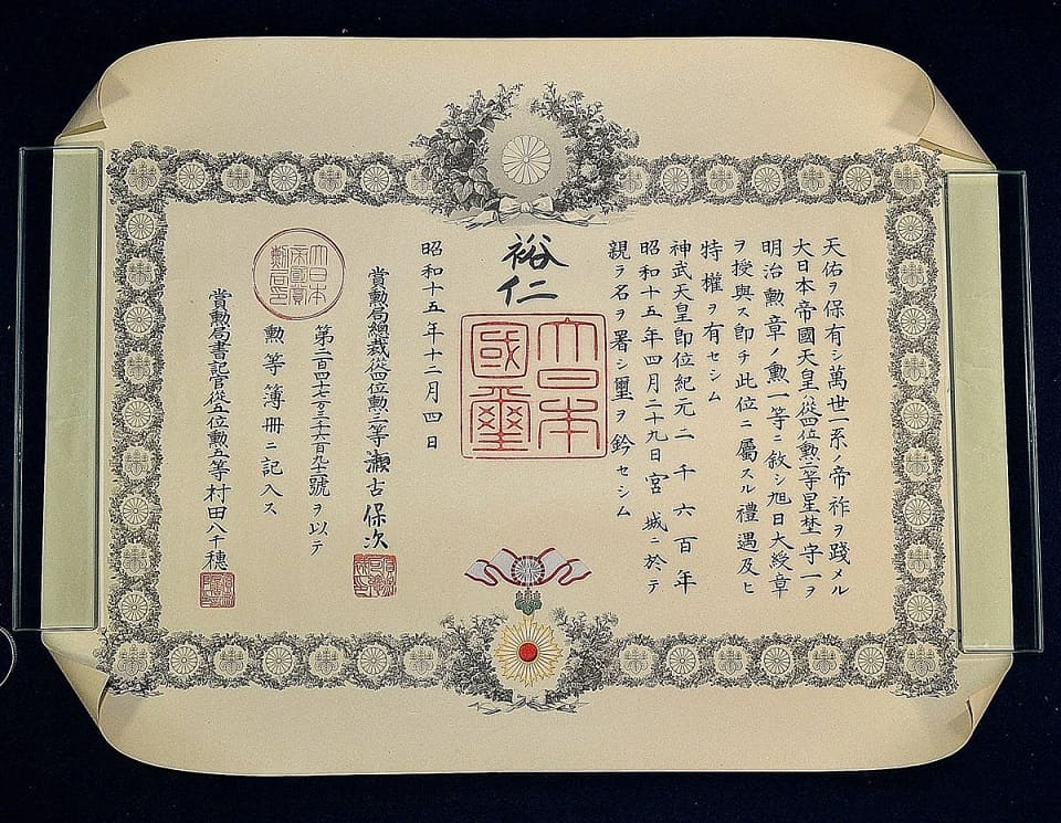 document for the 1st class rising sun order