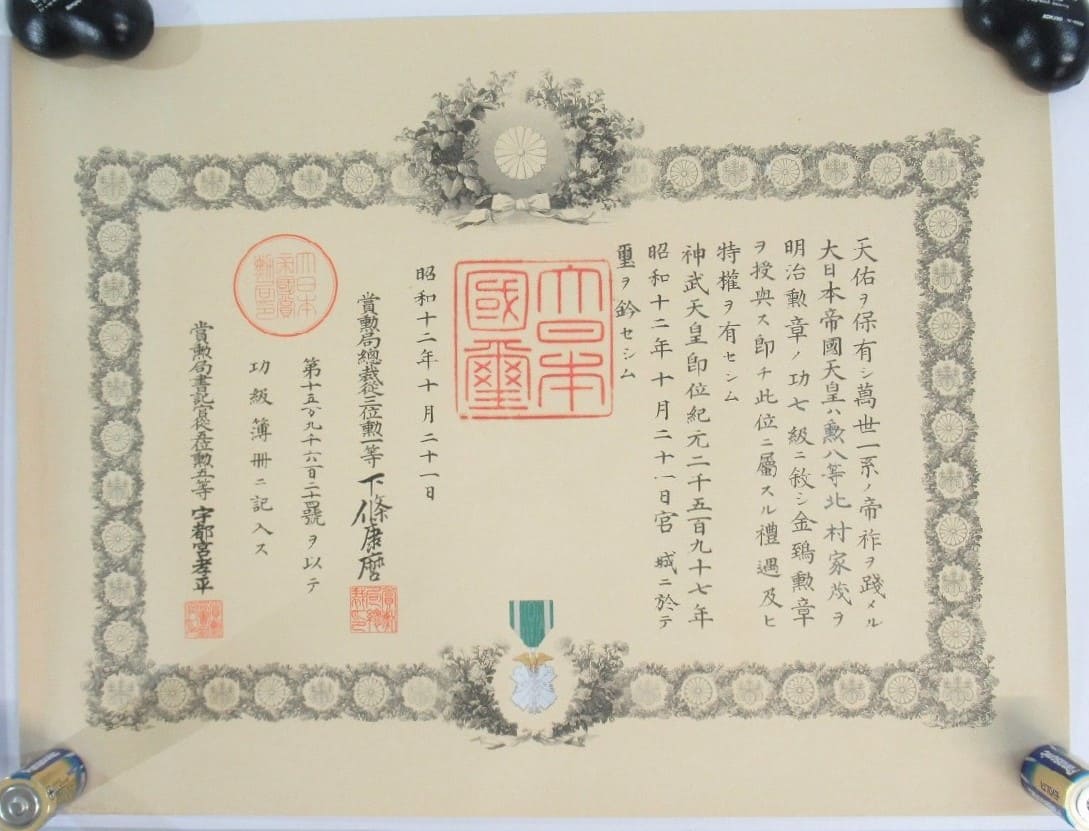 7th class Golden Kite, 7th class Rising Sun and Chinese Incident Medal all bear the same date - October 21, 1937 (day of the awardee death).