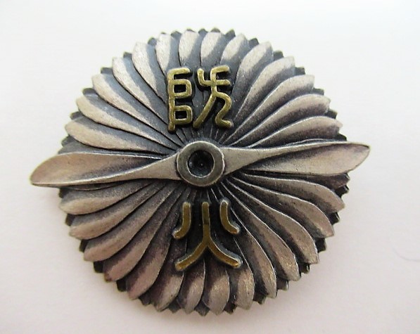 Badge with similar design from different district of Osaka https://asiamedals.info/threads/kanezuka-air-raid-defense-corps-1935-maneuvers-participation-commemorative-badge.23265/