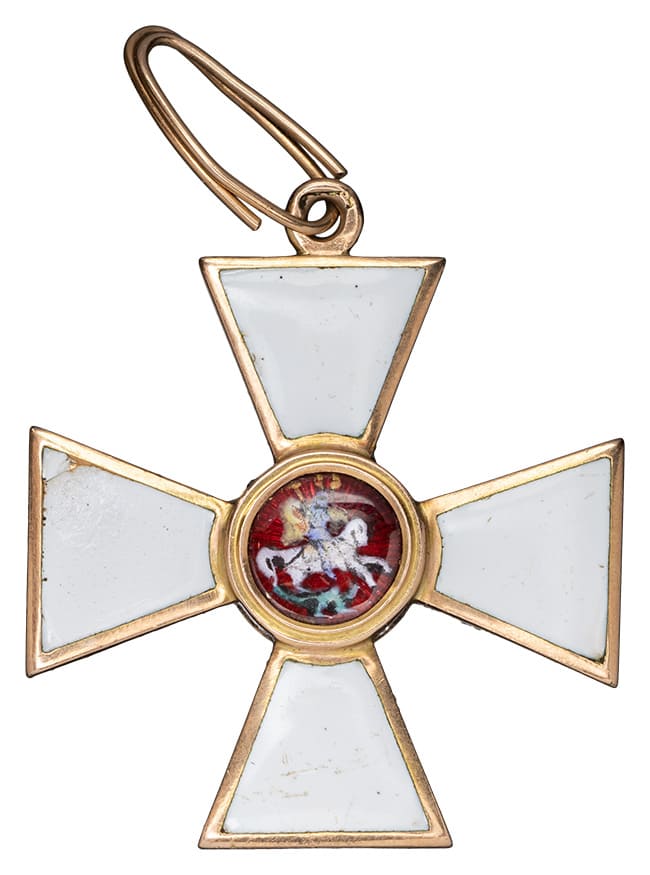 Marked with assay mark "56" with the coat of arms of St. Petersburg; on the upper beam under the enamel the imperial eagle, on the lower - "AK" for Albert Keibel.