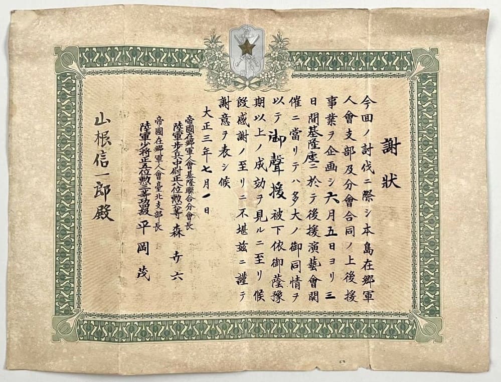 帝國在郷軍人會築港分會表彰章