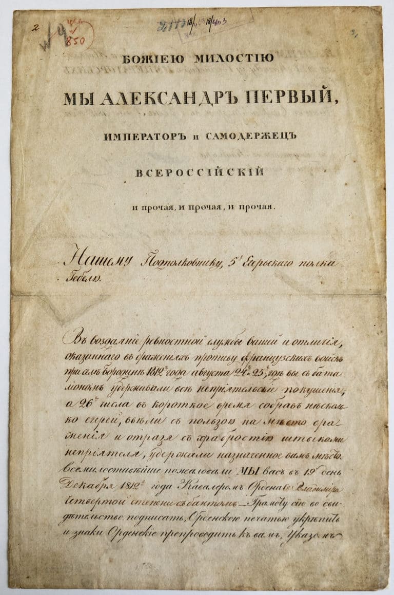 In reward for your zealous service and the distinction rendered in the battles against the French troops near the village...