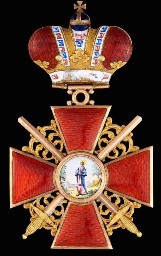 Goldsmith Afanasy Panov /золотых дел мастер Афанасий Панов/ between 1802-1820 made 2897 "Holstein type" crosses of St. Anne order (type 1797) of 1st and 2nd class.