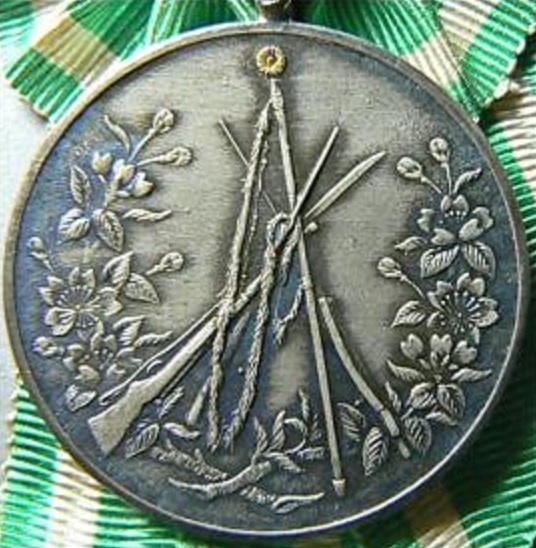 Badge was manufactured by Kinkodo workshop https://asiamedals.info/threads/badges-marks-and-labels-of-kinkodo-medals-co.22613.