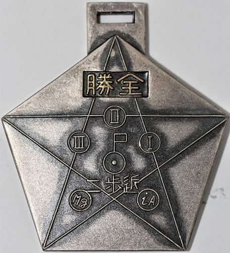 Specimen from the collection of Raymond LaBar. Photos courtesy of the owner. Obverse 勝 - Winner reverse 独立守備 - Independent Garrison 歩三ノ二 - 3rd Infantry Regiment, 2nd Battalion