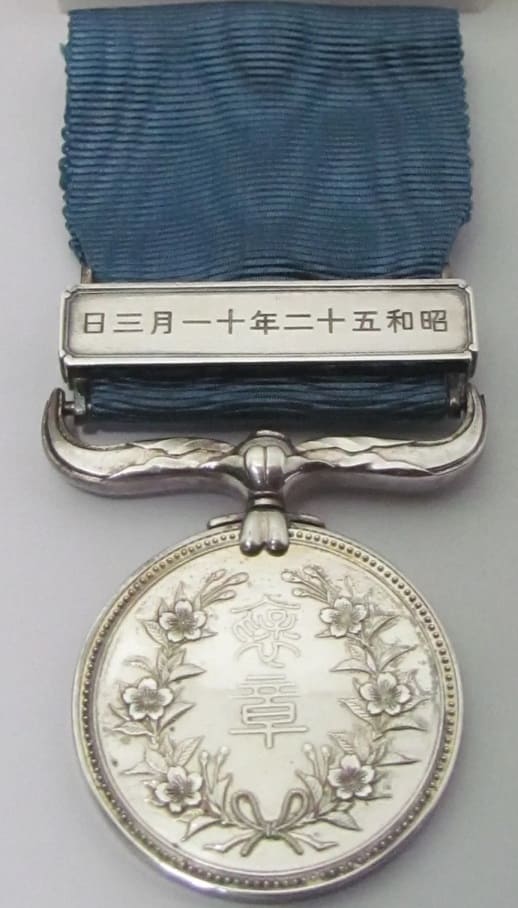 Awarded on January 1, 2005. Back of the bar marked with "ZH" mark https://asiamedals.info/threads/two...it-marks-on-japanese-orders-and-medals.13720/.