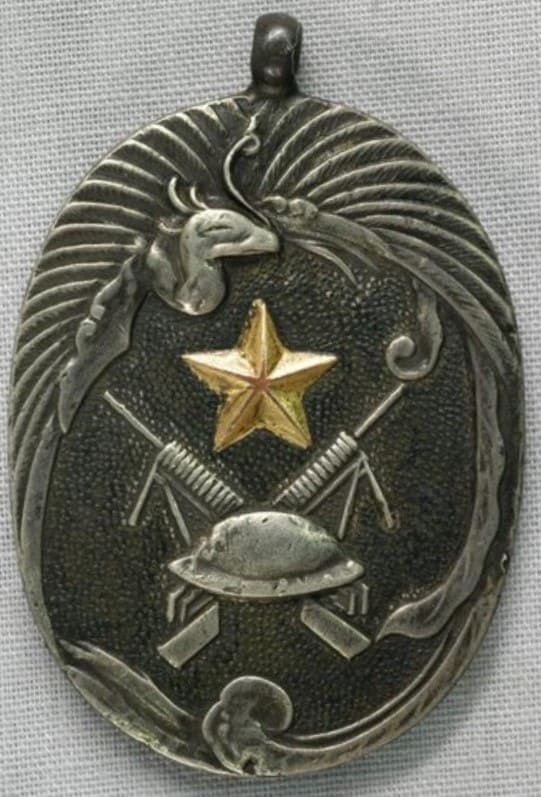 Design of this badge was influenced by meritorious service badge https://asiamedals.info/threads/meritorious-service-badge-of-imperial-military-reservist-association.23076/