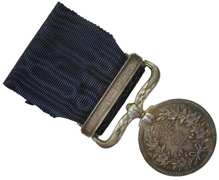 Dark Blue Ribbon medal marked ヒ awarded on November 22, 1920.
