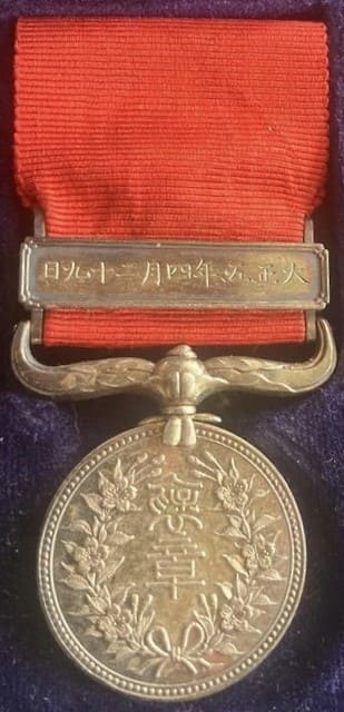 Set that was awarded on November 14, 1955. Note highly unusual case (look like they used case for 7th/8th class Rising Sun order. Typical cases for a medals from 1940s/1950s https://asiamedals.info/threads/blue-ribbon-medal-of-honor-awarded-in-1944.27269/ ...
