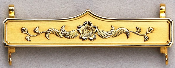 For the sixth award an ornamental gold bar (made in gilded silver) without engraving is given in exchange for the last five silver bars that were awarded...