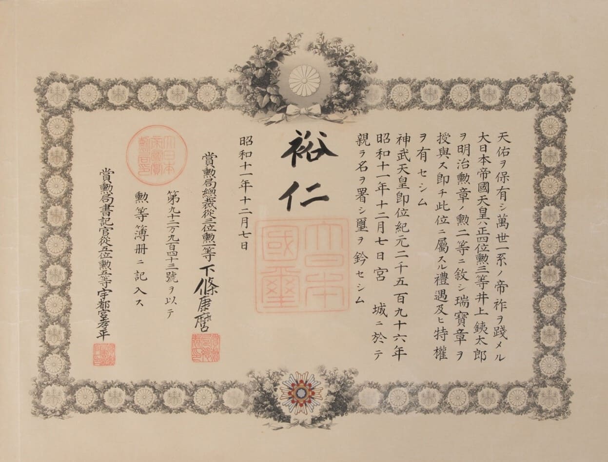 japaneseorderofsacredtreasureorderof the sacredtreasureorderof the sacredtreasure award document