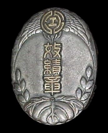 Badge was made in silvered metal and awarded to prefecture, city and village government employees for their meritorious service. Badge was worn on the right side of the...