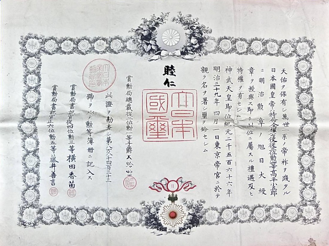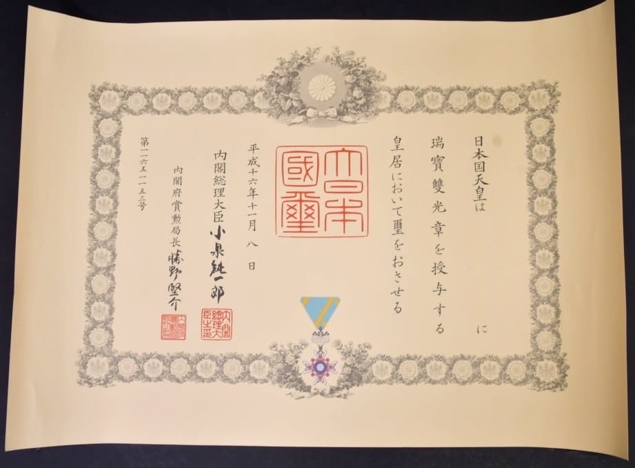 japanese rising sun order awarddocumentjapanesesacredtreasureawarddocument