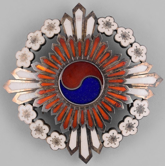 The Grand Order of the Plum Blossoms/대훈위이화대수장 was founded by Emperor Kwangmu on April 17, 1900/1900년 4월 17일 by Imperial edict No.13/칙령(勅令) 제13호 "Promulgation of the Ordinance for Awards and Decorations"/훈장 조례를 반포하다 .
