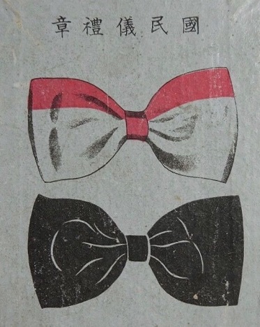 祝章は紅白、喪章は黒を以てし之を左胸に佩用する事に依り平服にて式服の代わりとなり失礼にはならぬことになります。