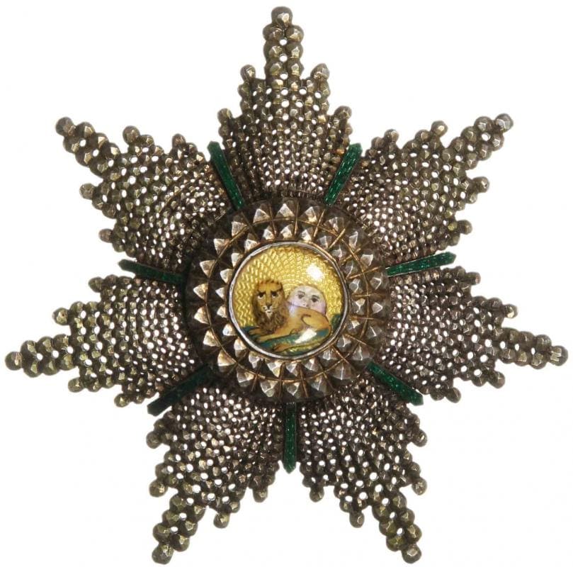 Diamond-cut Russian-made breast star with medallion from Saniolmamalek-made lion. See also https://asiamedals.info/threads/orders-of-saint-stanislaus-made-by-st-petersburg-workshop-g-p-g-p.26586/