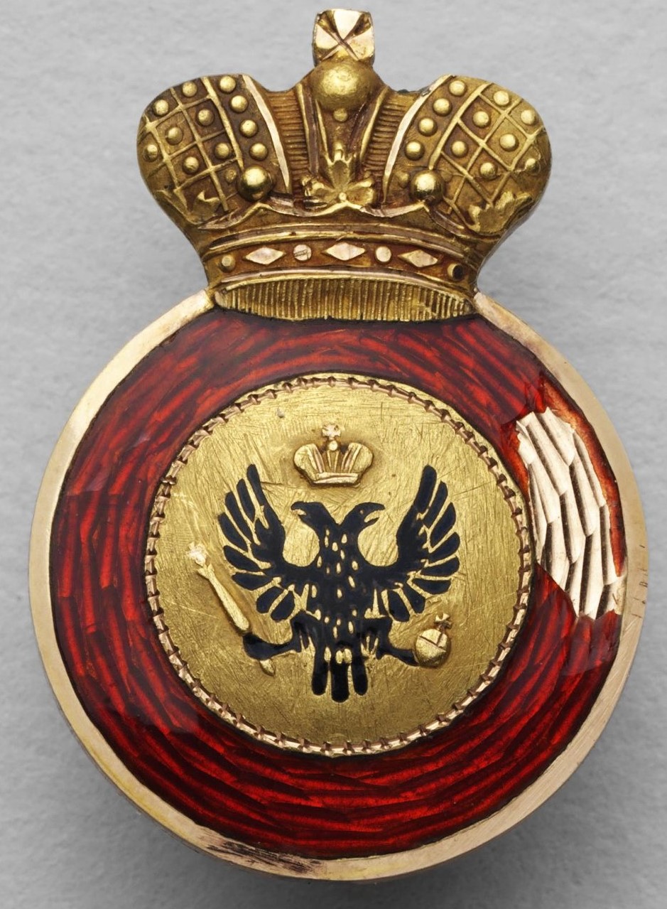 Marked on reverse under the enamel with "double-headed eagle" and on the ring with St. Petersburg assay office year mark "1850".