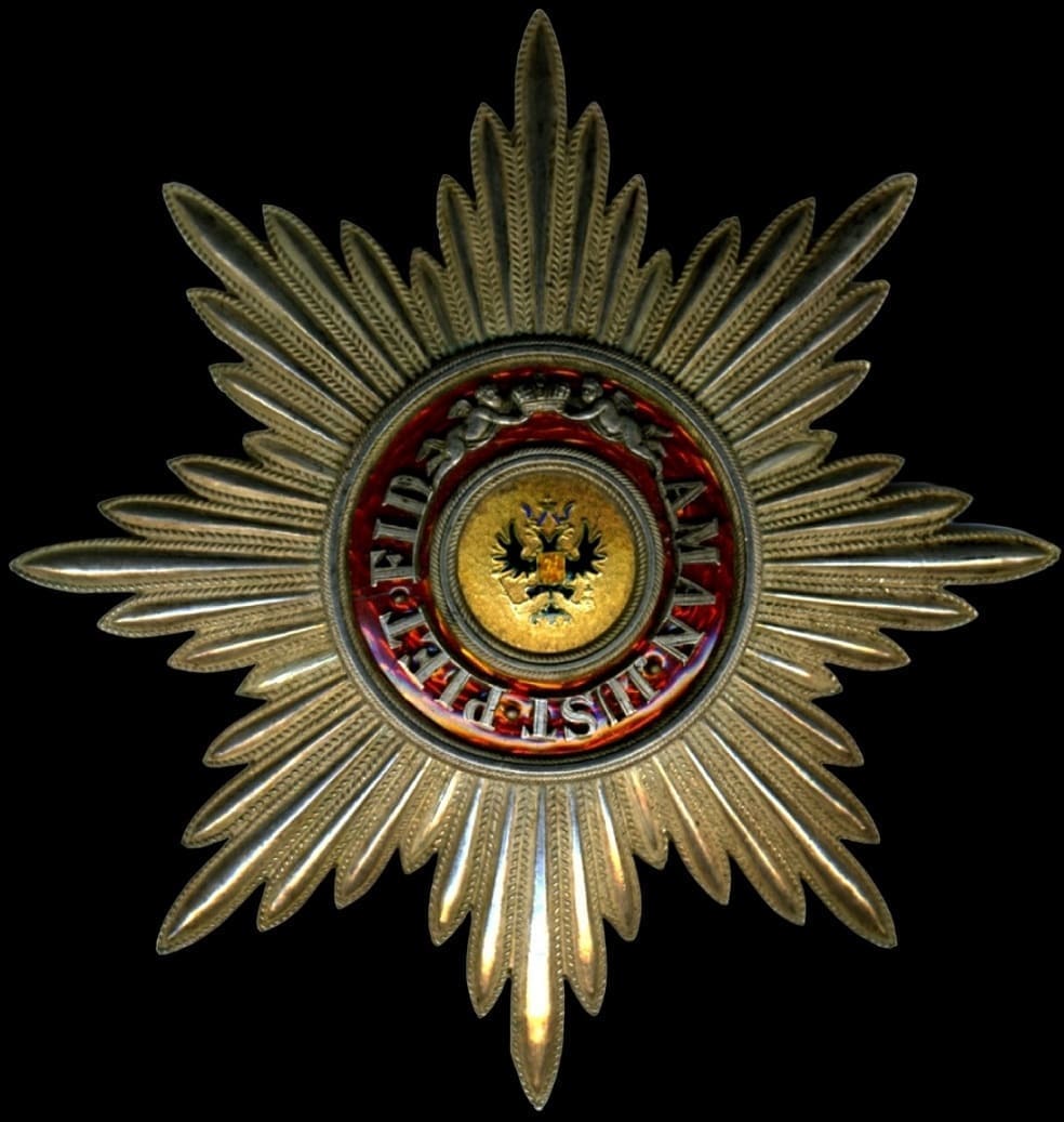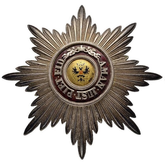 He is also wearing Saint Anna with diamonds for Non-Christians and 2nd Class 1st Grade breast star of Double Dragon order.