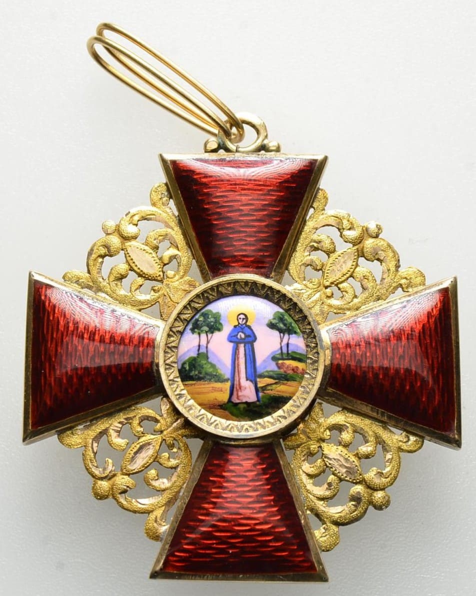 1st class cross with dark cherry enamel (quite typical color of enamel even for "Kapitul" crosses made by IK workshop during 1860s, see for example https://asiamedals.info/threads/orders-of-saint-anna-with-imperial-crown-made-by-julius-keibel-ik.25763/#post-356695)