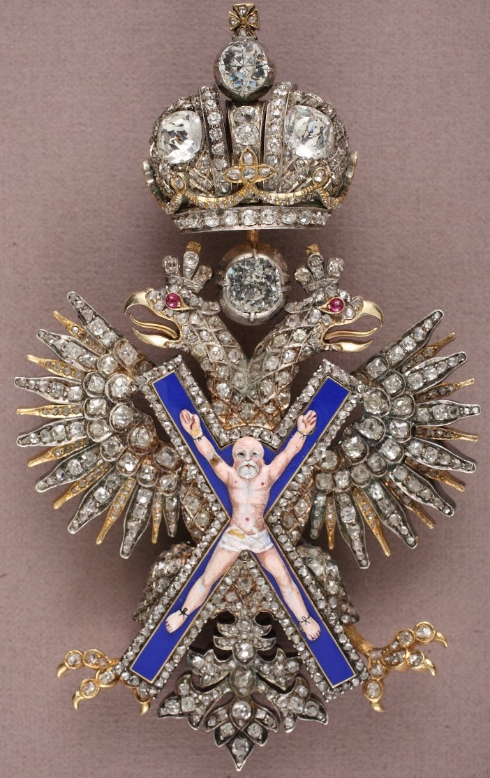 Cross of unusual iconography /crosses with a similar eccentric iconography https://asiamedals.info/threads/orders-of-saint-andrew-from-late-1790s-early-1800s-presumably-made-by-the-goldsmiths-pierre-louis-agis-and-pierre-etienne-theremin.28134/ /.