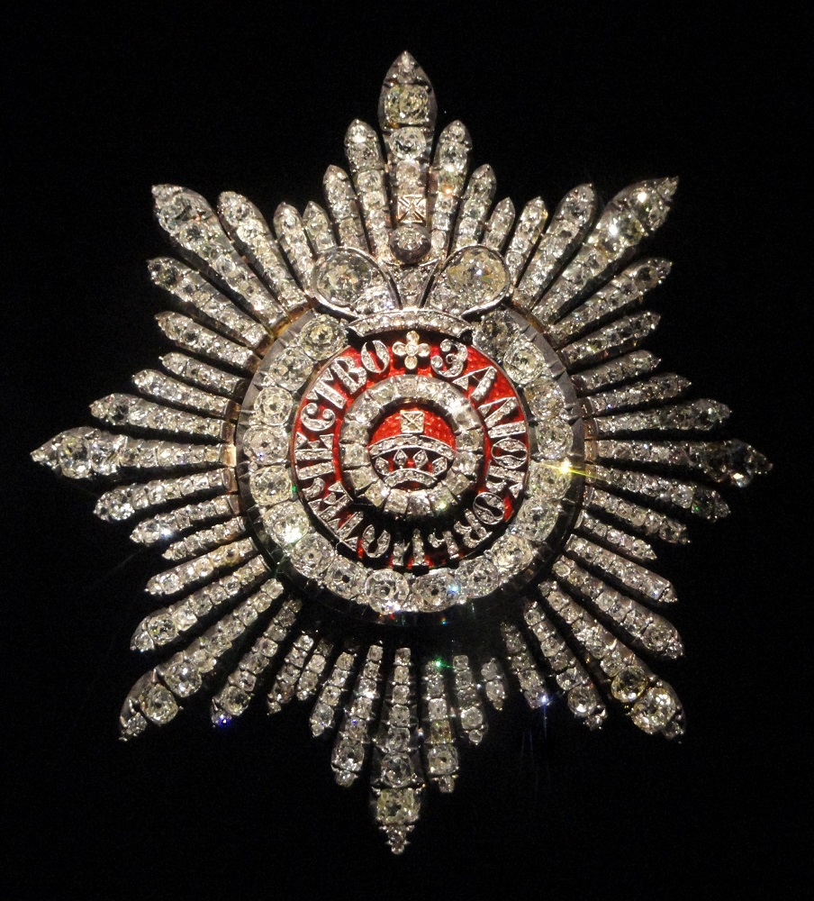 Silver, gold and enamel, enhanced with a total of 197 diamonds of varying cut and size, with 7 large diamonds to the loop, 40 in each of the arms and 66 surrounding the enamel center and 4 upon the central cross, pawnbroker's mark between rays.