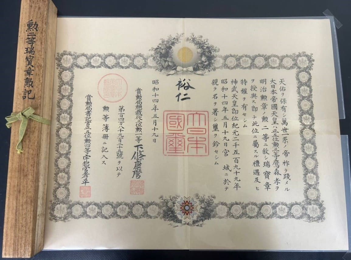 2nd class sacredtreasureorder awarded in 1939