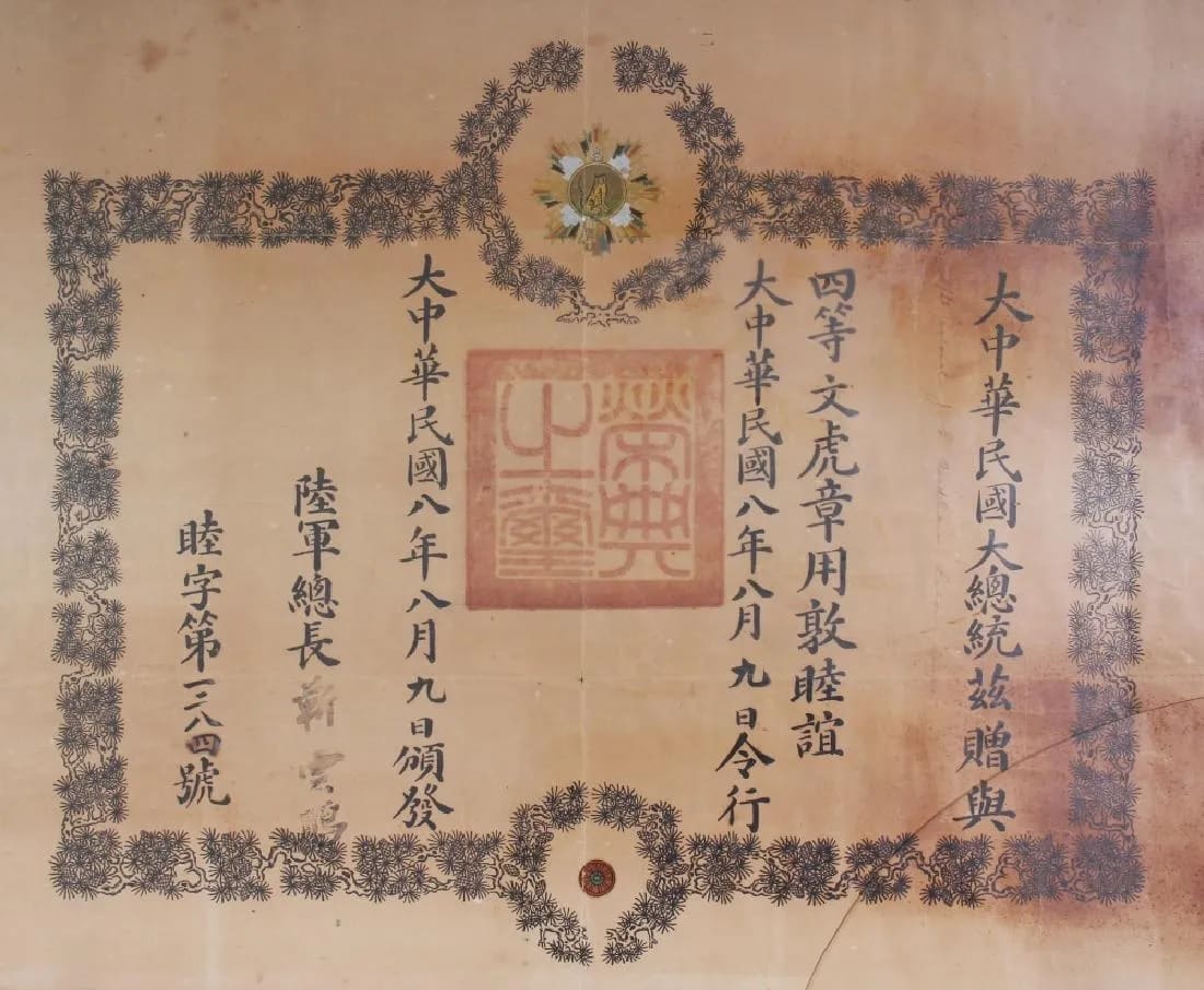 chinese republican orderorderofthestripedtigerorderofthestripedtiger award documentorderofthestripedtigerdocument