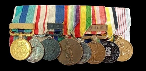 Interesting medal bar. Note that under Russo-Japanese war medal ribbon of Chinese Striped Tiger order was placed.