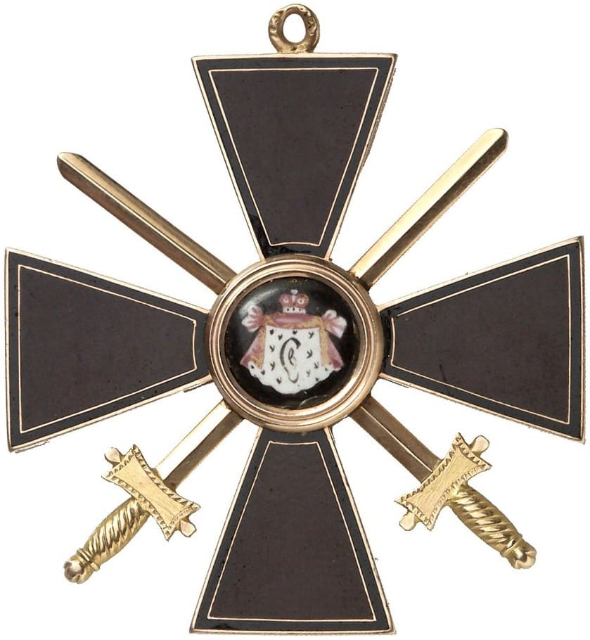 1st class cross of Saint Vladimir order with unusual swords and iconography that are typical for this unidentified manufacturer.