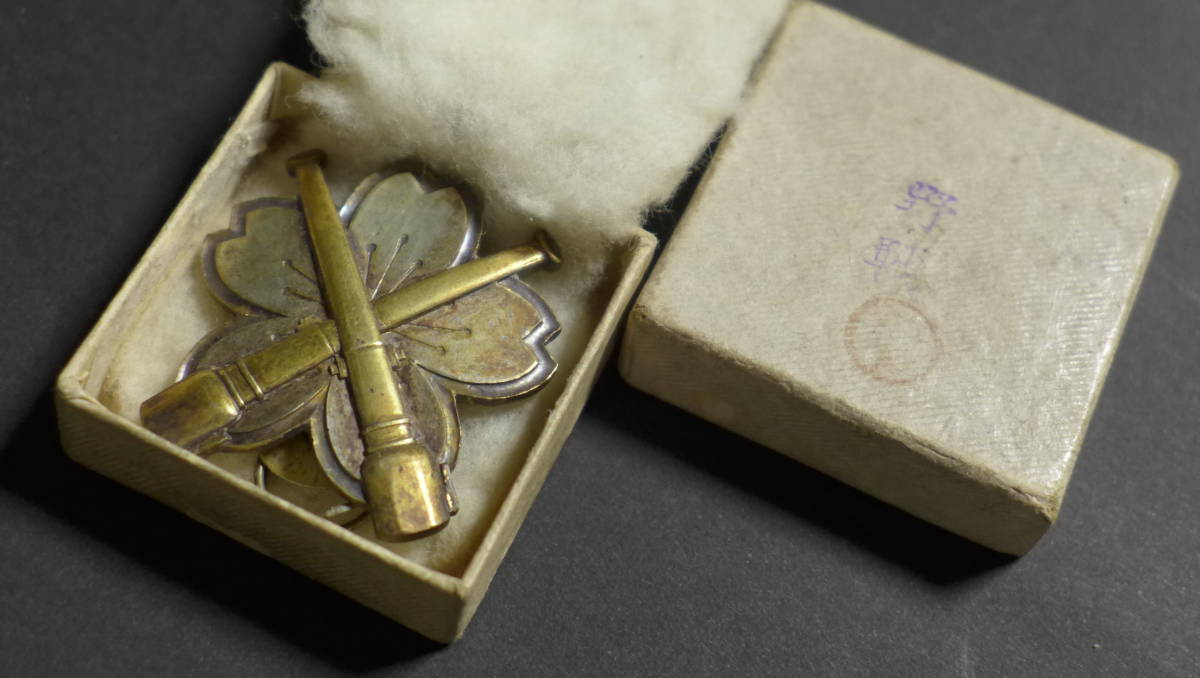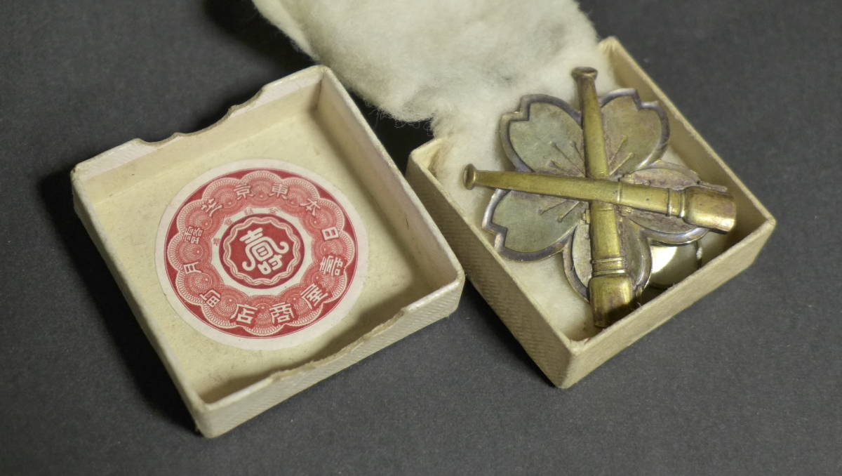Today it is mainly known as a main supplier of gunto koshiraes, but this workshop was also actively involved in manufacturing badges, ribbon bars and other military insignia.