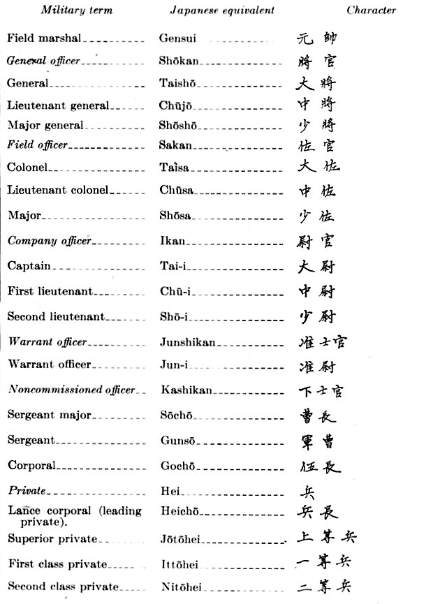 Ranks and Military Branches of Imperial Japanese Army and Navy