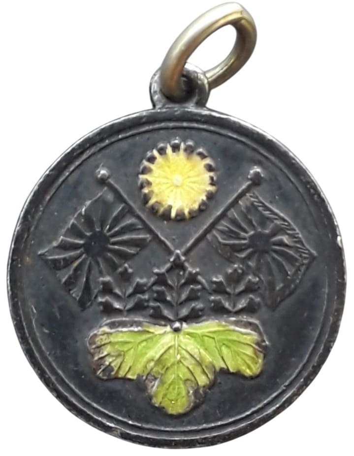 Mix of two designs https://asiamedals.info/threads/manchuria-independent-garrison-unit-commemorative-badges-woodlouse-design.24330/ and https://asiamedals.info/threads/independent-garrison-enlistment-commemorative-watch-fob.24321/